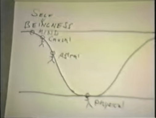 But once we start out, that’s not enough; we set up a body. The first body is a causal body. It’s a delightful body, because there, every concept, every idea we have, is instantaneously fulfilled. Every concept is instantaneously fulfilled. And there’s not too much motivation to get out of that causal body, and yet it’s relatively easy to do it, to go back up.