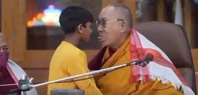 The Dalai Lama asks a little boy to let him French-kiss him