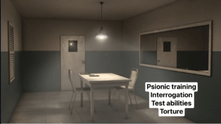 (32:30) But we did that for a couple of years, from 14 to 16. You and me both were there at that place. And then, down under the—like inside the hanger, and then an elevator takes you down under, and then there’s like an interrogation room. And that’s where the kids would just line up in the hallway and then wait one at a time to go into the room. And then the reptilian, who— you sat across the table from the reptilian. And then he was training me—I don’t know if he trained every kid the same, but—to withstand psionic attacks. And then, as soon as I could block it, or learn how to block it, then he was teaching me how send it back to him.